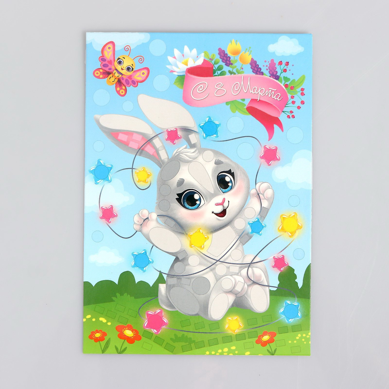 Аппликация стикерами на 8 марта форменная "Зайка", набор для творчества, 15.2x24x0.3 см., Школа талантов, Китай