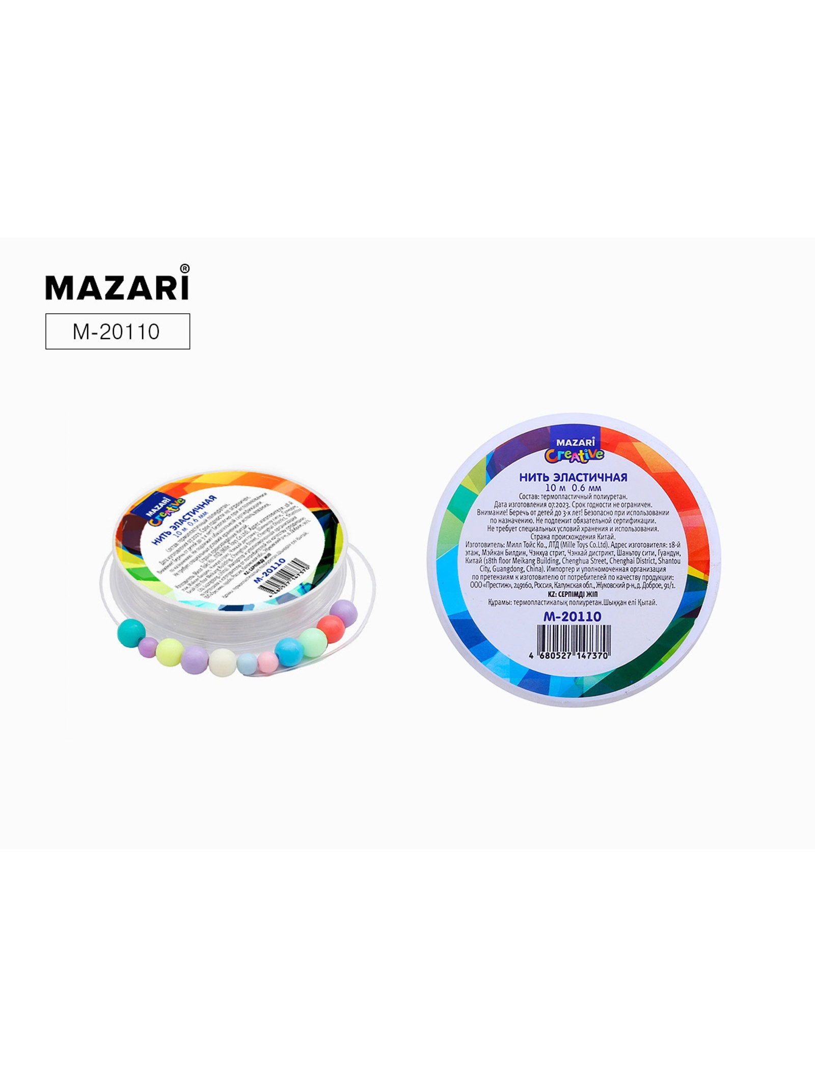 Нить эластичная, 10 м, диаметр 0.6 мм, термоусадочная плёнка, 6 см., MAZARI, Китай