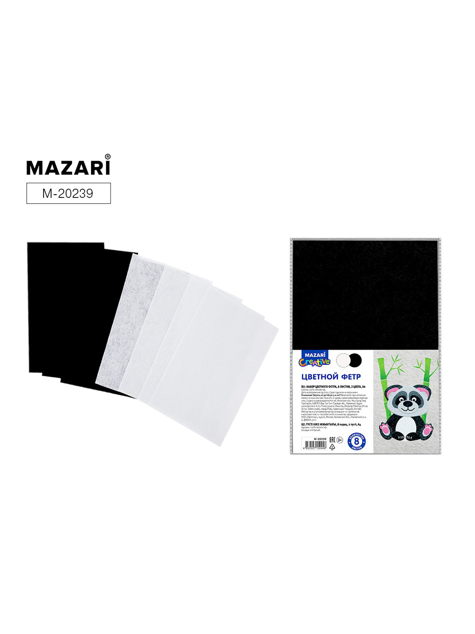 Фетр "Черно-белый", 8 листов, формат А4, толщина 1 мм, MAZARI, Китай