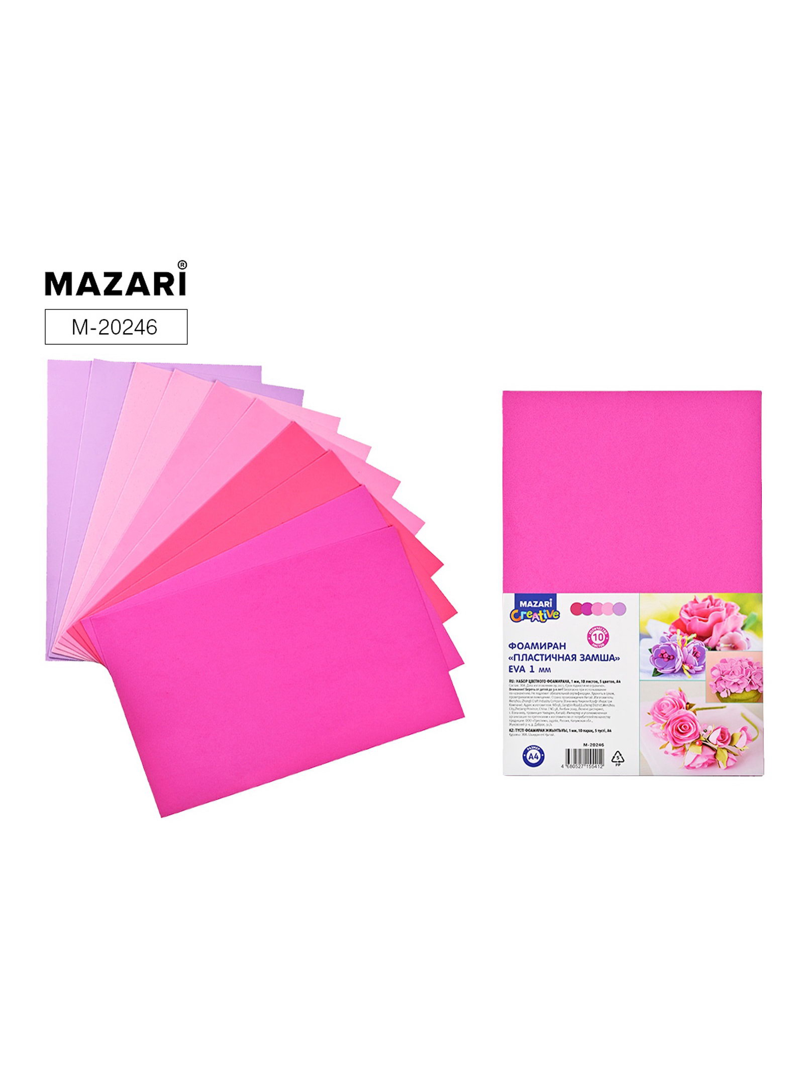 Фоамиран цветной "Розовые-сиреневые оттенки", 10 листов, 5 цветов, формат А4, толщина 1 мм, MAZARI, Китай