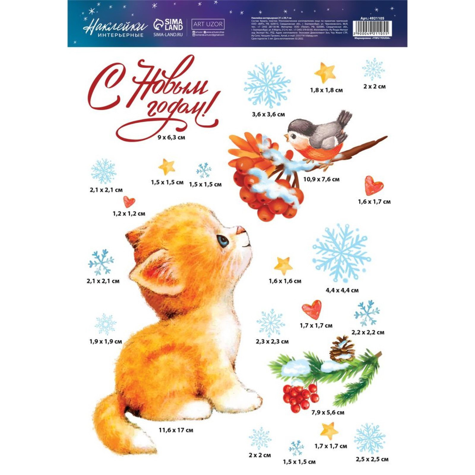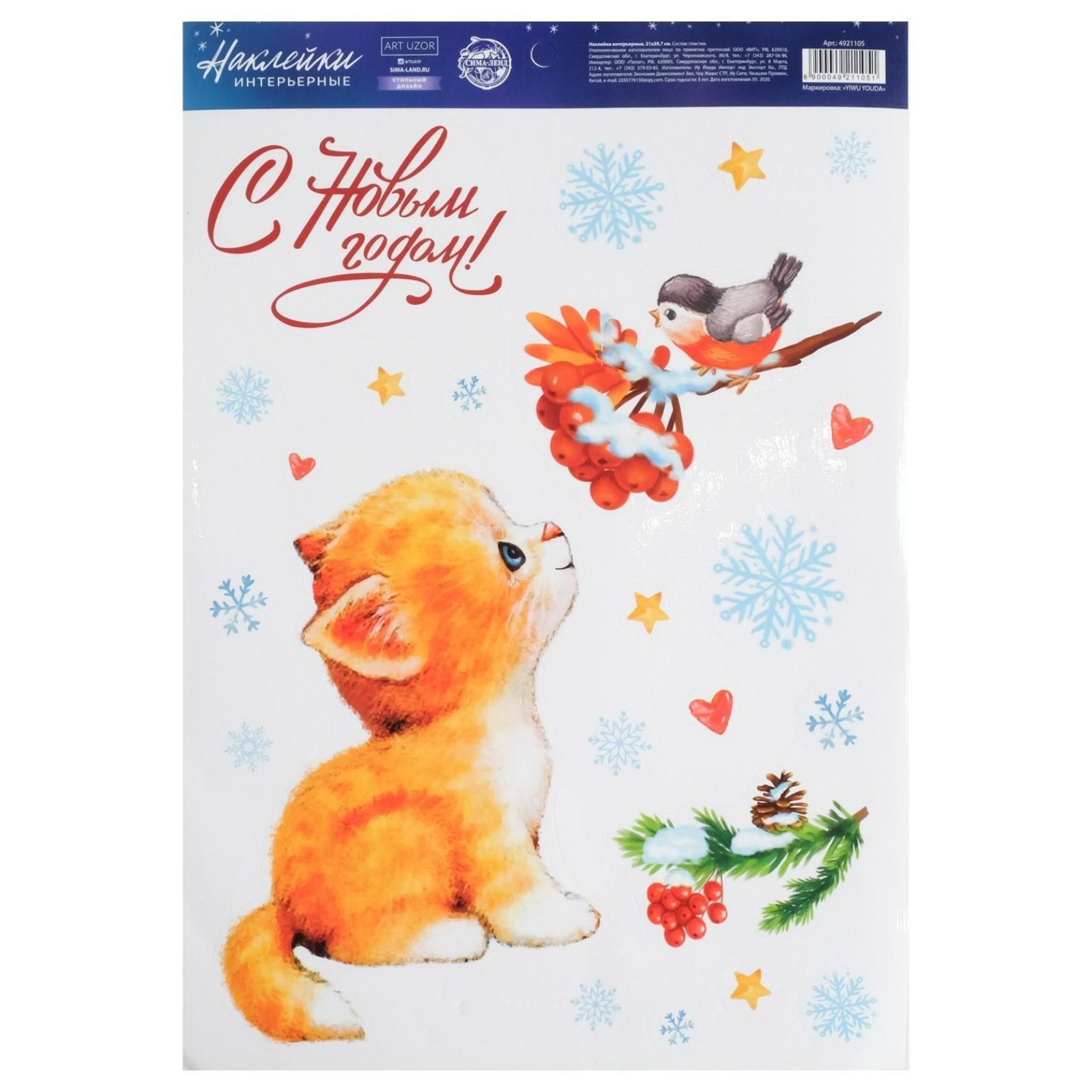 Наклейка интерьерная "Котик", 21х29.7 см, 0.1x21x29.7 см., Арт Узор, Китай
