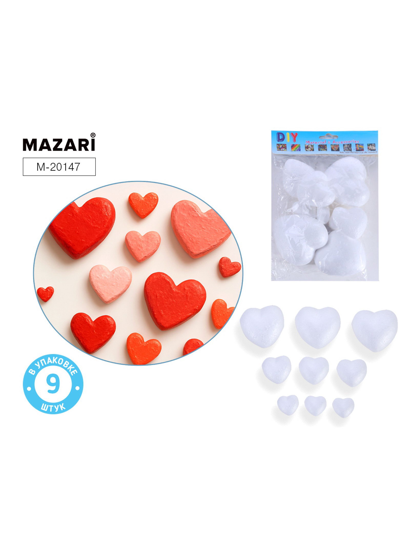 Заготовки для декорирования "Сердца из пенопласта", полистирол, 9 шт., MAZARI, Китай