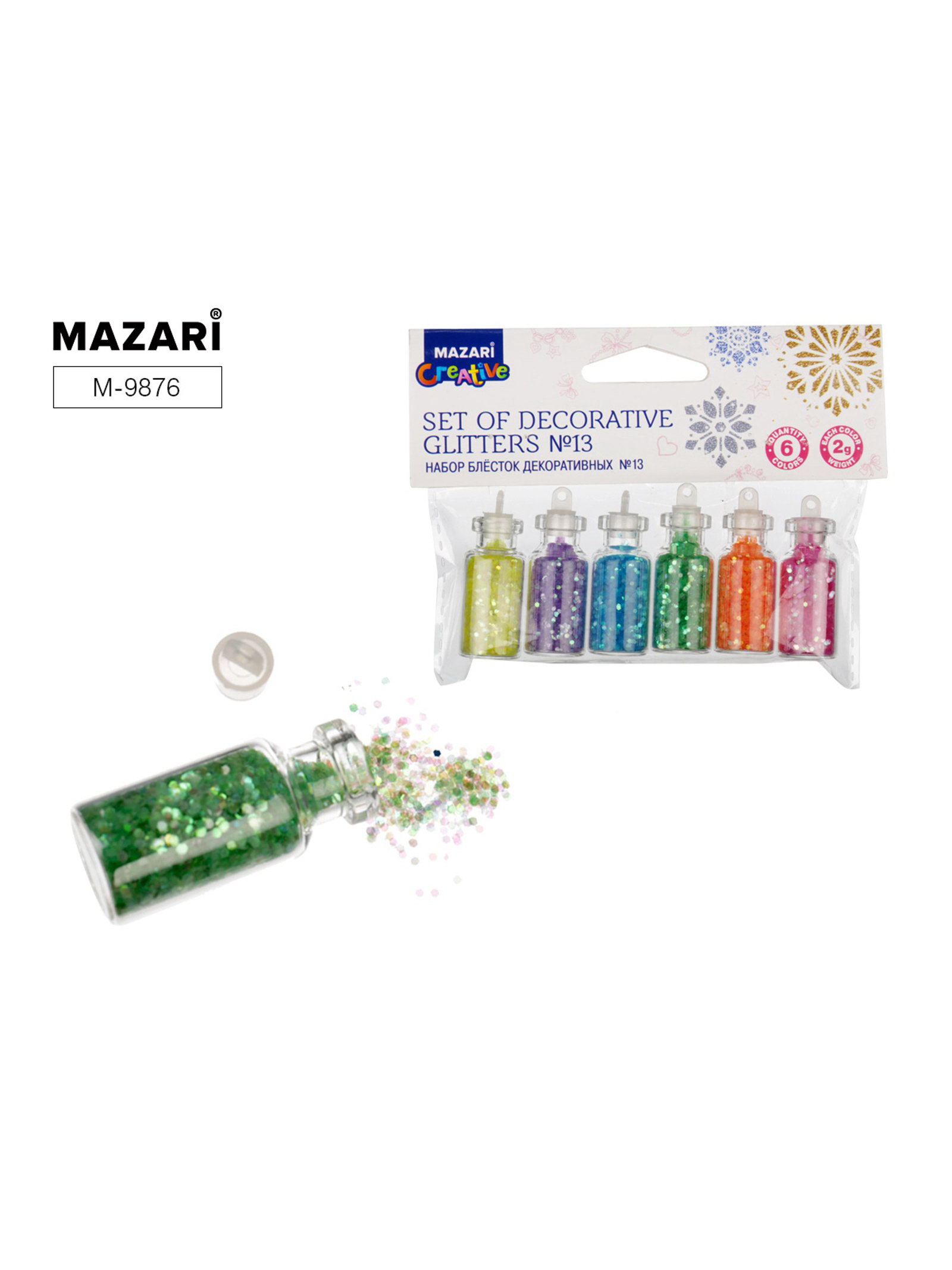 Набор блёсток декоративных № 13, 6 цветов x 2 г, стеклянная колба, MAZARI, Китай