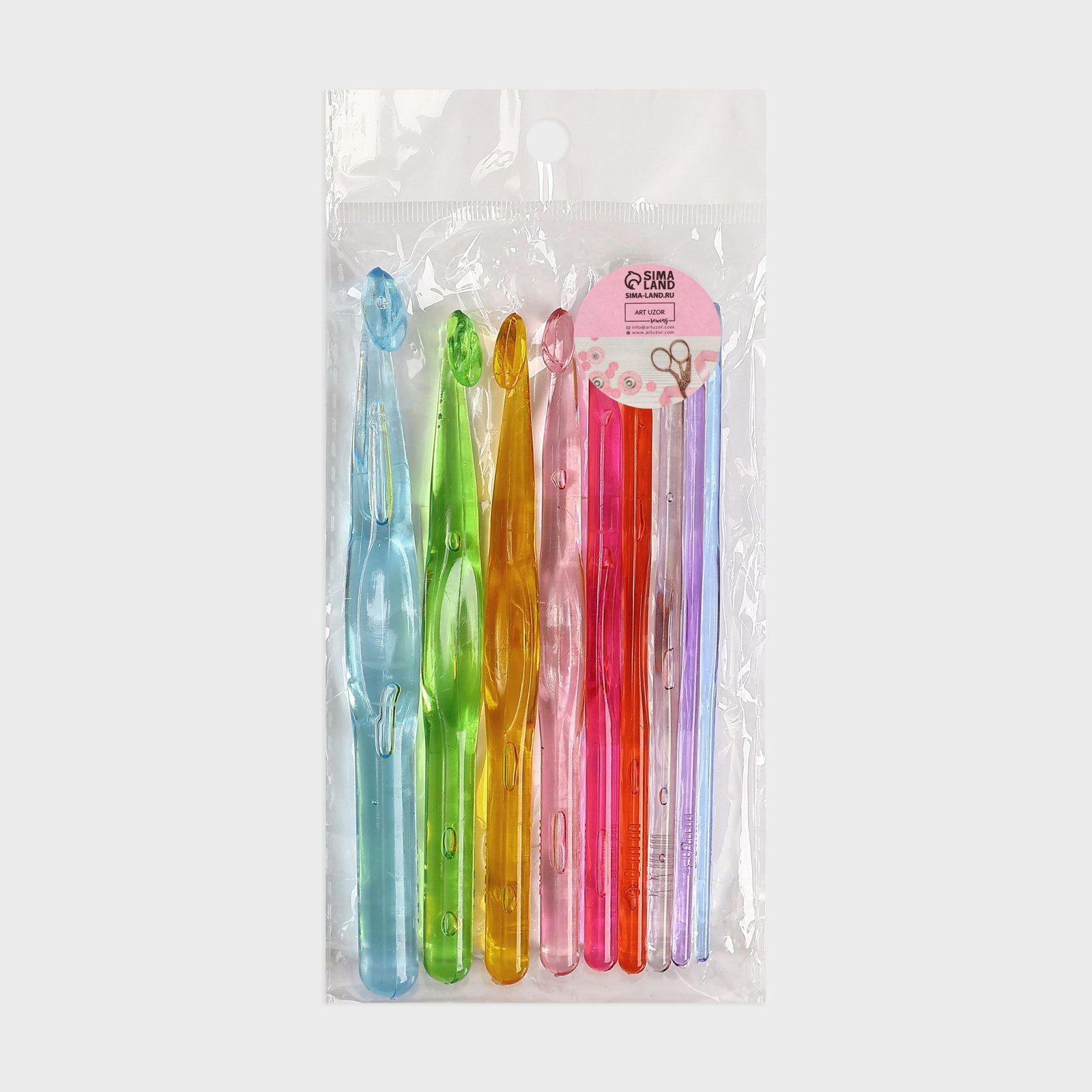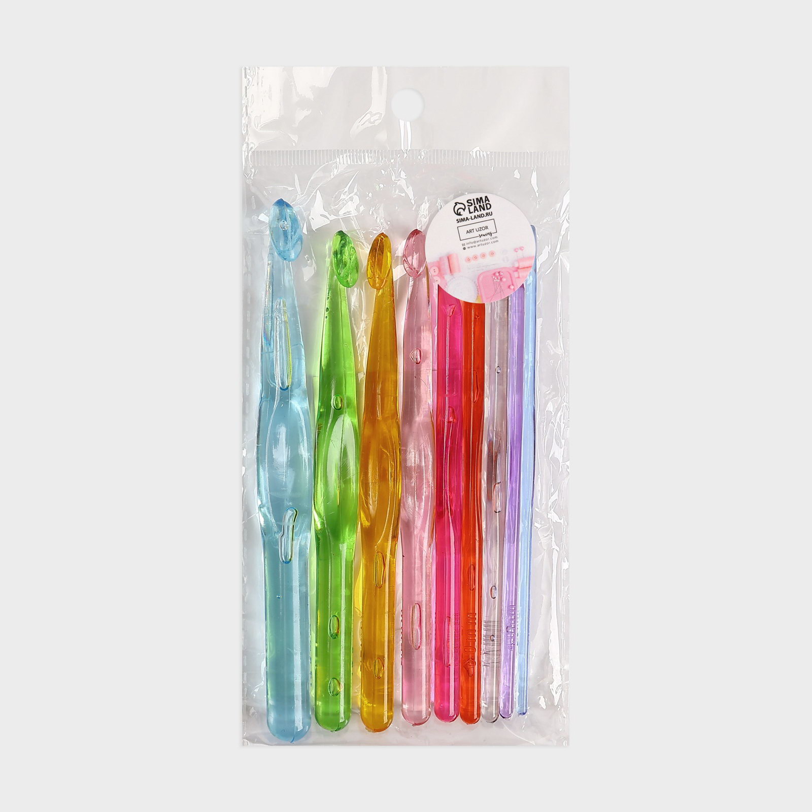 Набор крючков для вязания, d=3-12 мм, 14 см, 9 шт., разноцветный, 8x14x1 см., Арт Узор, Китай