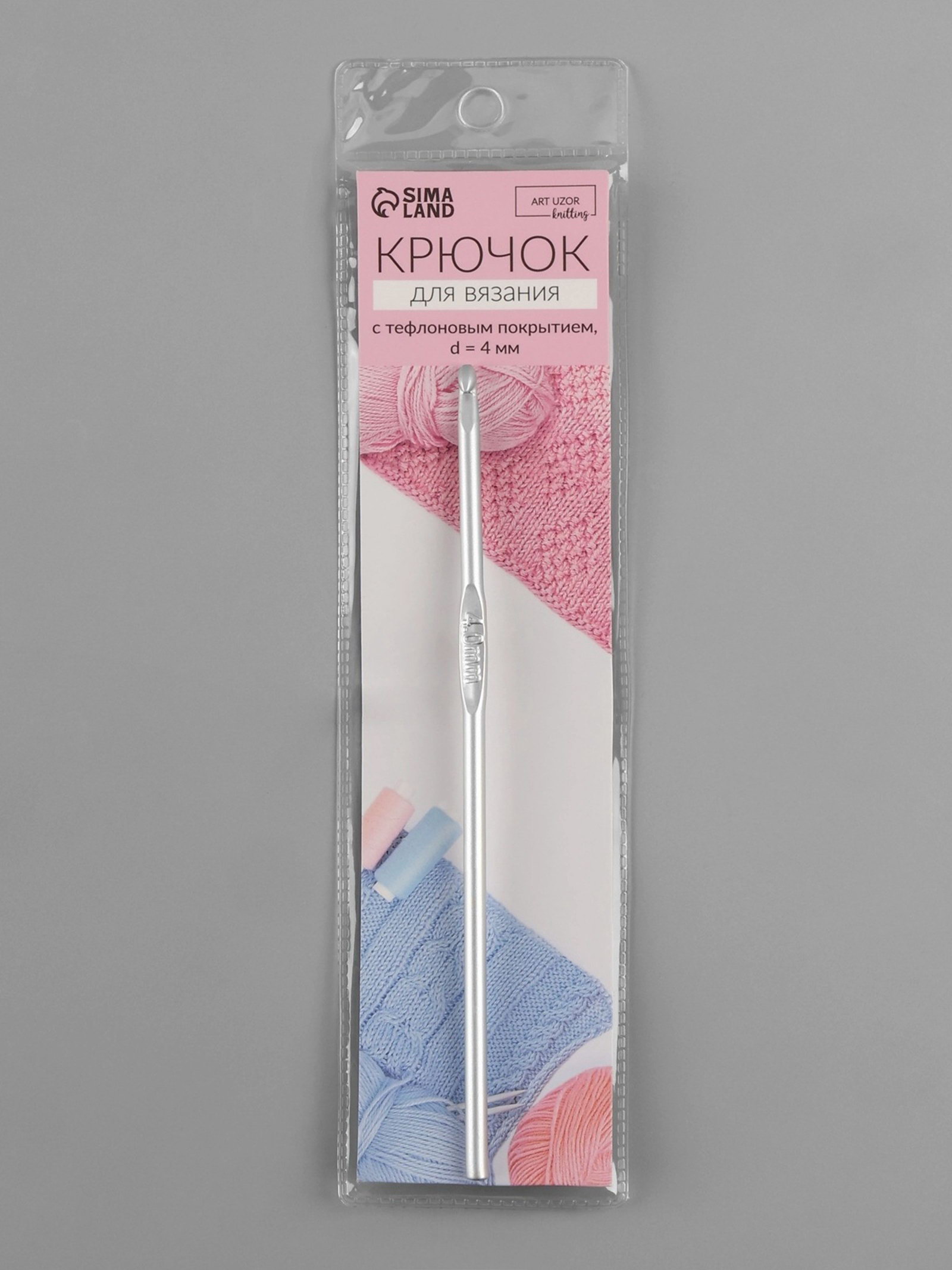 Крючок для вязания, с тефлоновым покрытием, d=4 мм, 15 см, 40х40х0.4 см., Арт Узор, Китай