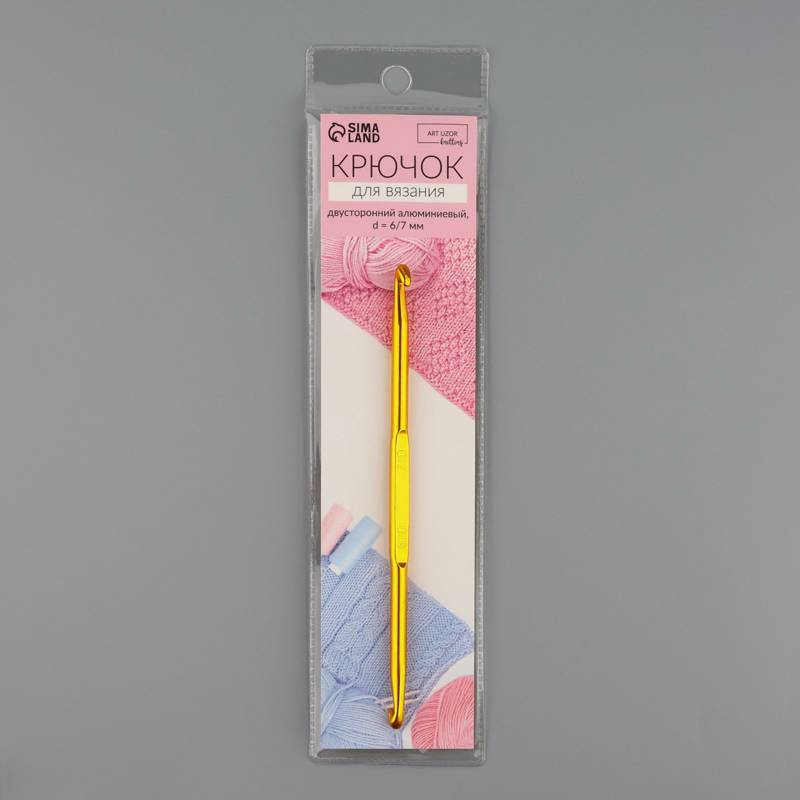 Крючок для вязания, двусторонний, d=6/7 мм, 13 см, цвет золотой, 0.5x13x0.7 см., Арт Узор, Китай