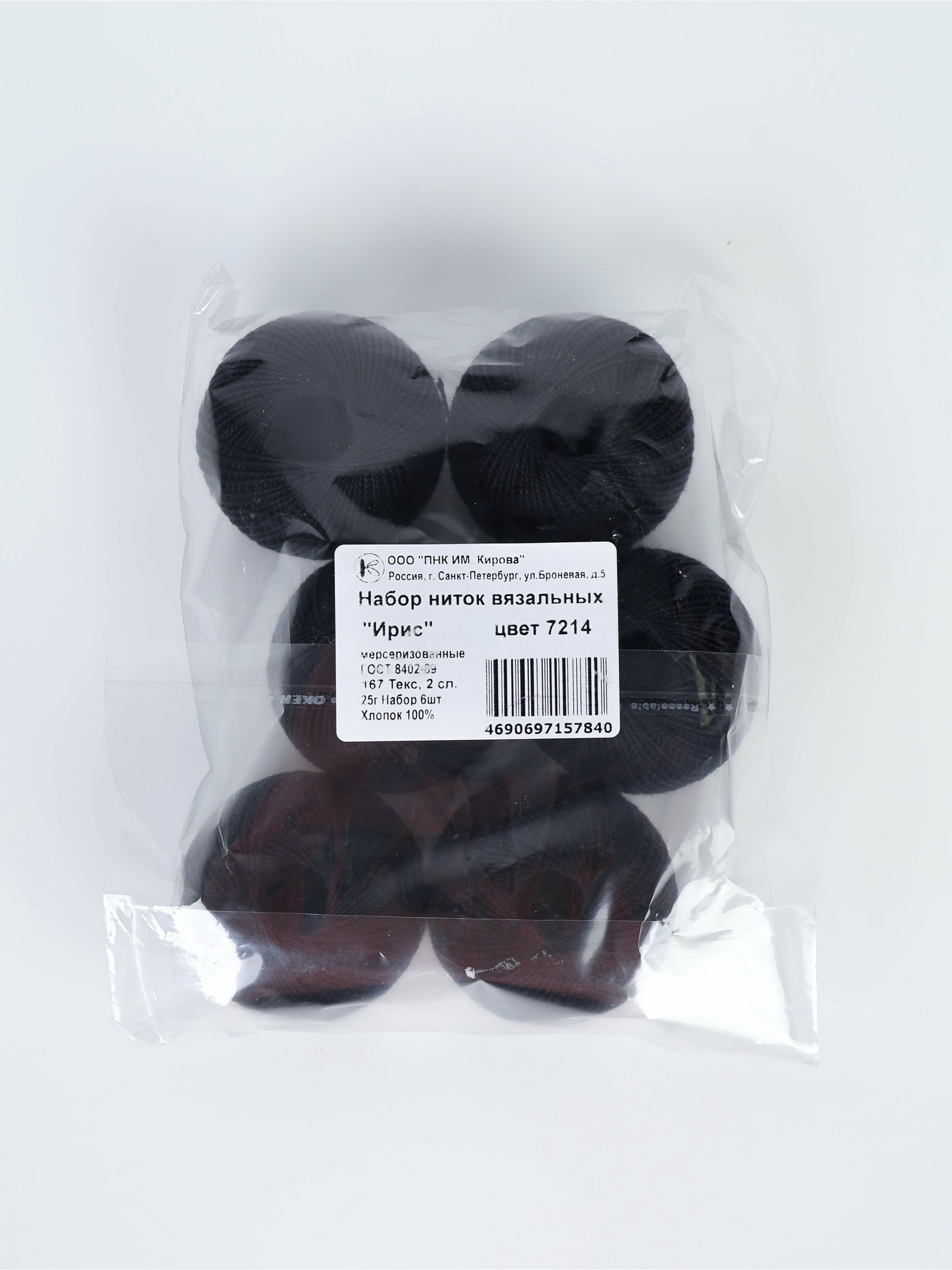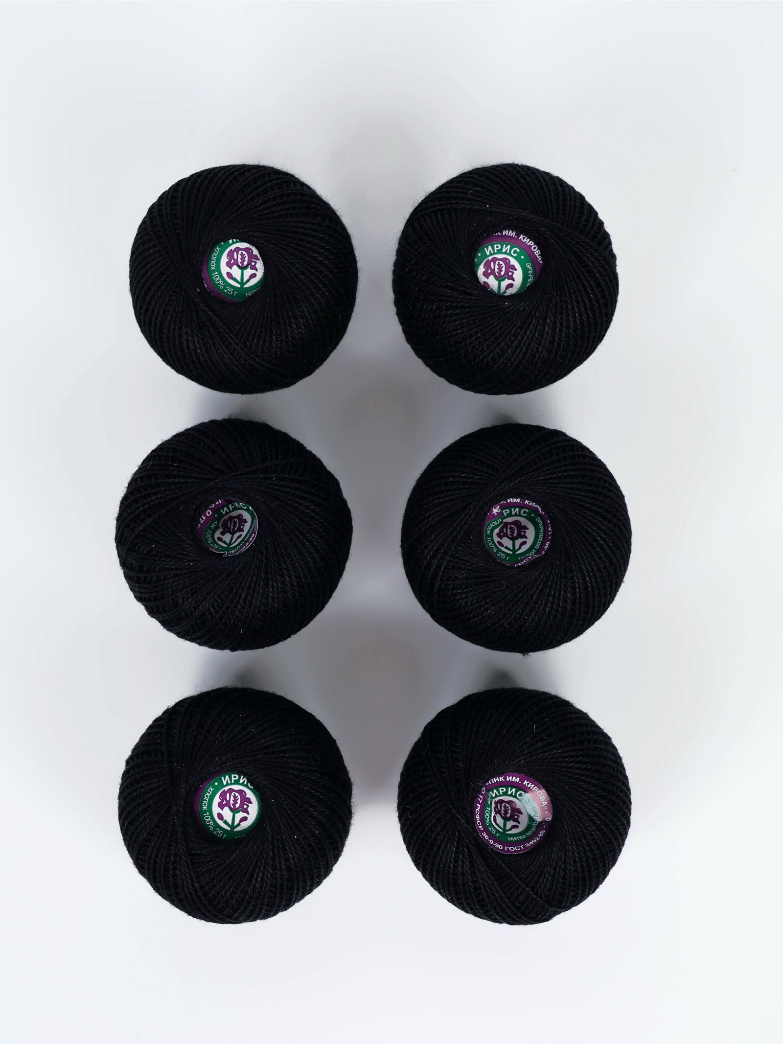 Нитки вязальные "Ирис" 150м/25г 100% мерсеризованный хлопок Набор 6шт, ПНК им. Кирова, Россия