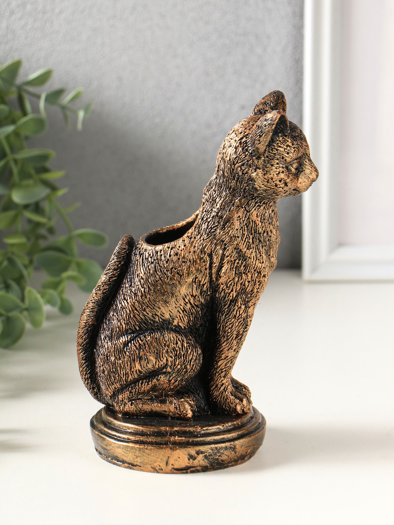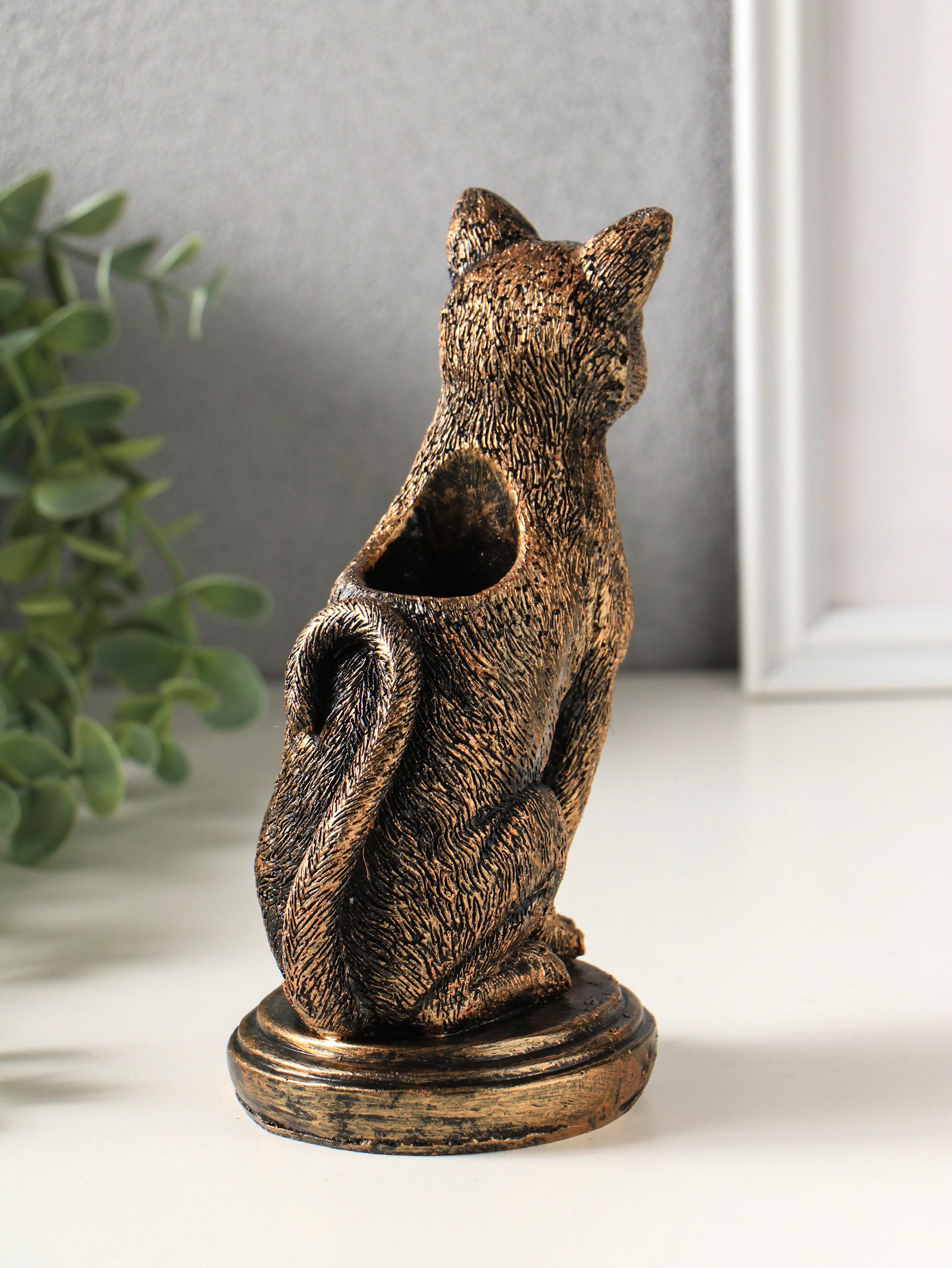 Подсвечник на 1 свечу "Кошка", 17x10x8 см, под бронзу, Хорошие сувениры, Россия