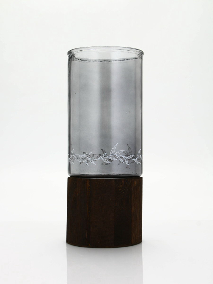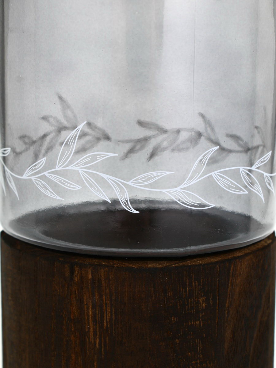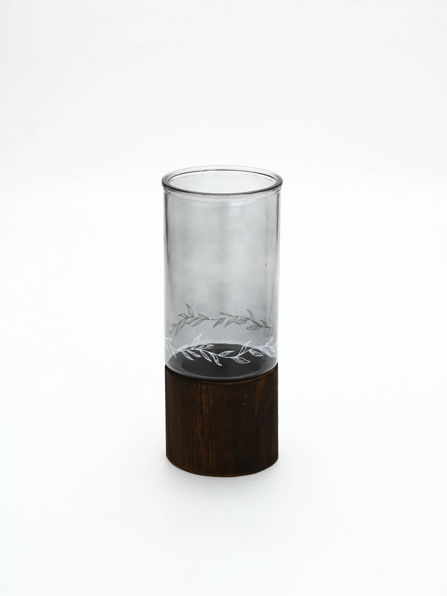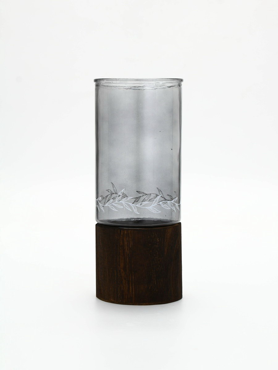 Ваза для цветов с деревянной подставкой из темного стекла, 25.5x10 см, 1.25 литра, 10x10x25.5 см., SEE YOU HOME, Китай