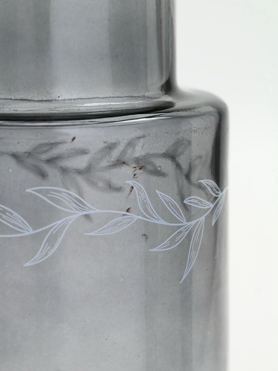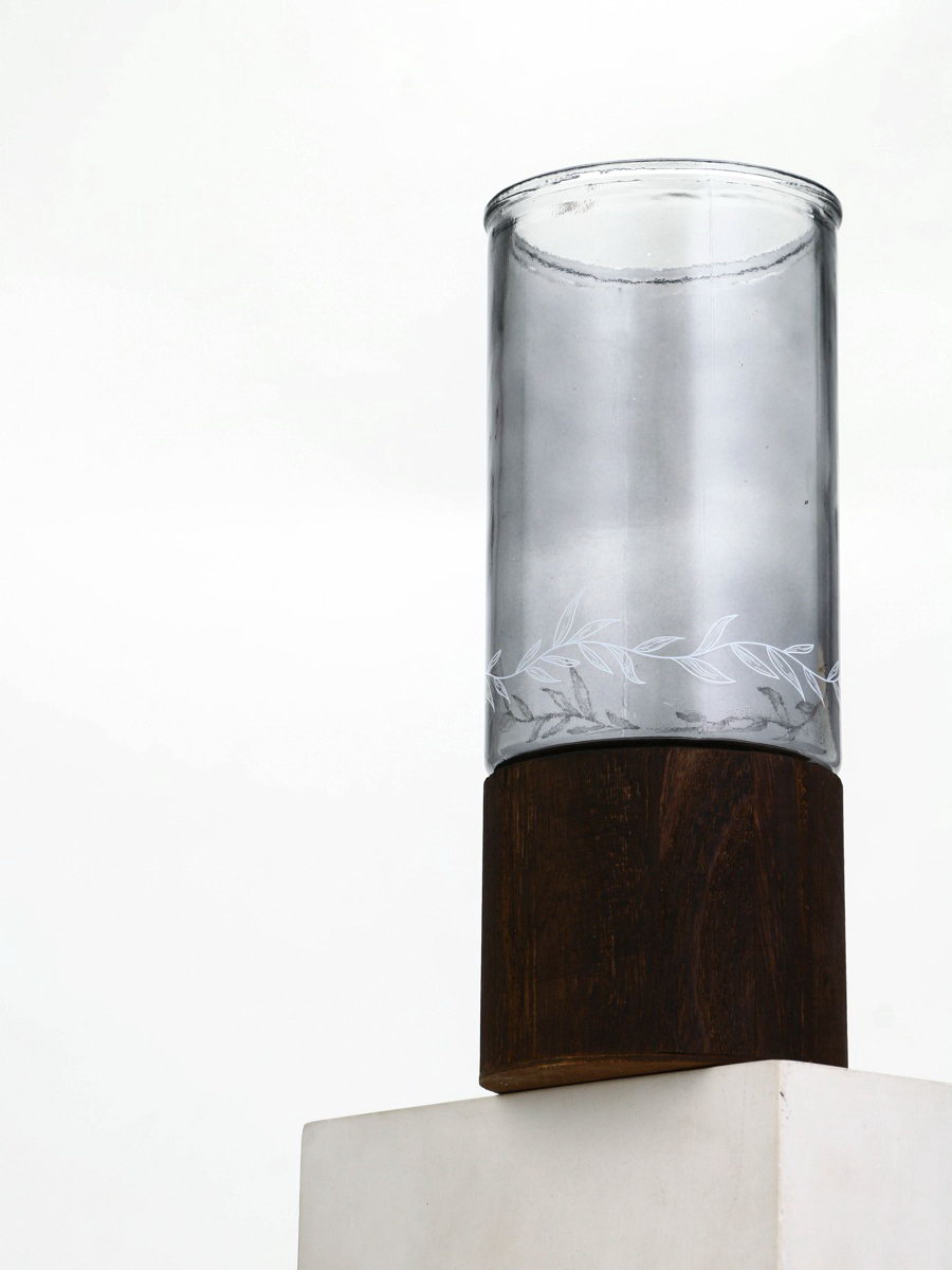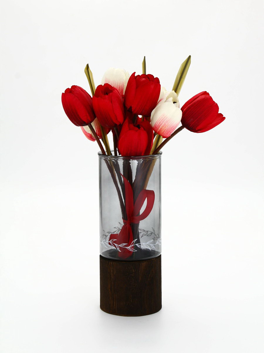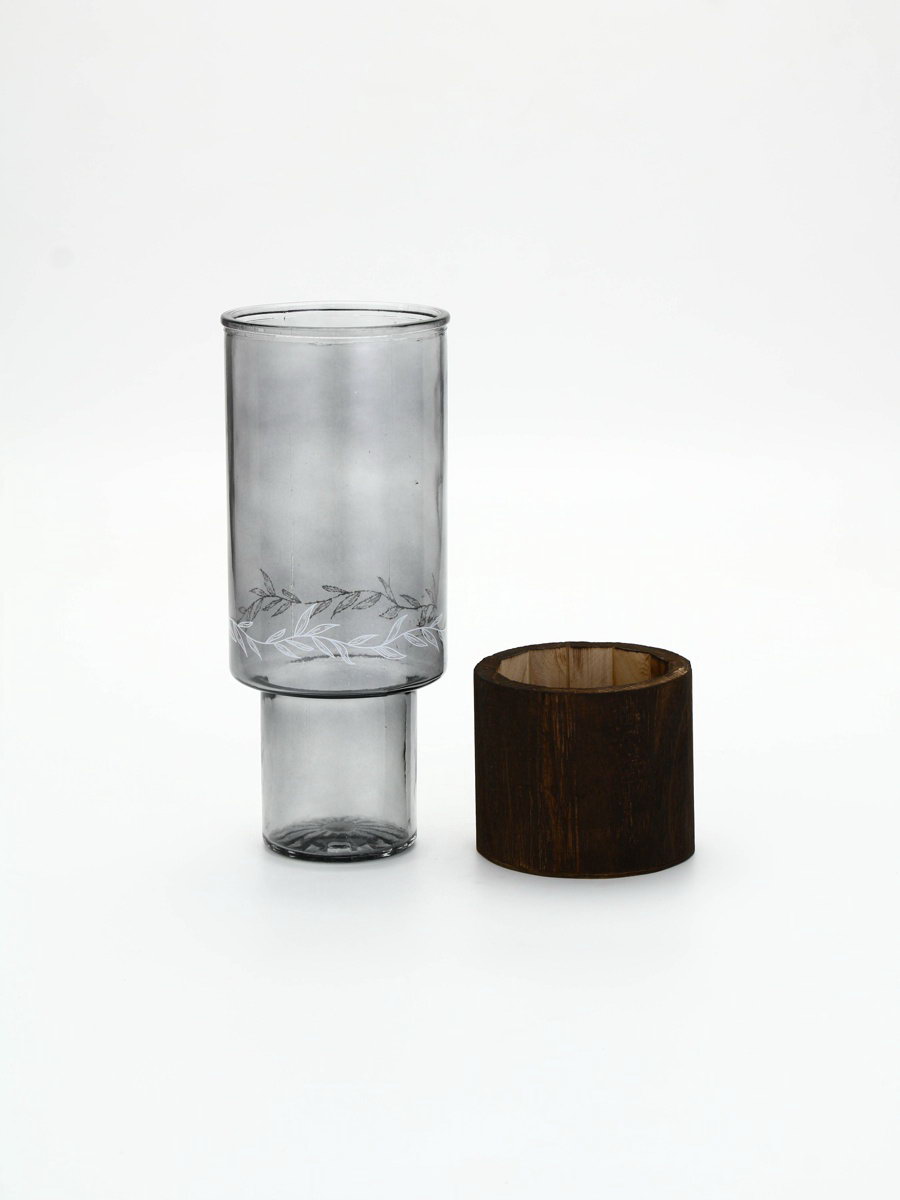 Ваза для цветов с деревянной подставкой из темного стекла, 25.5x10 см, 1.25 литра, 10x10x25.5 см., SEE YOU HOME, Китай