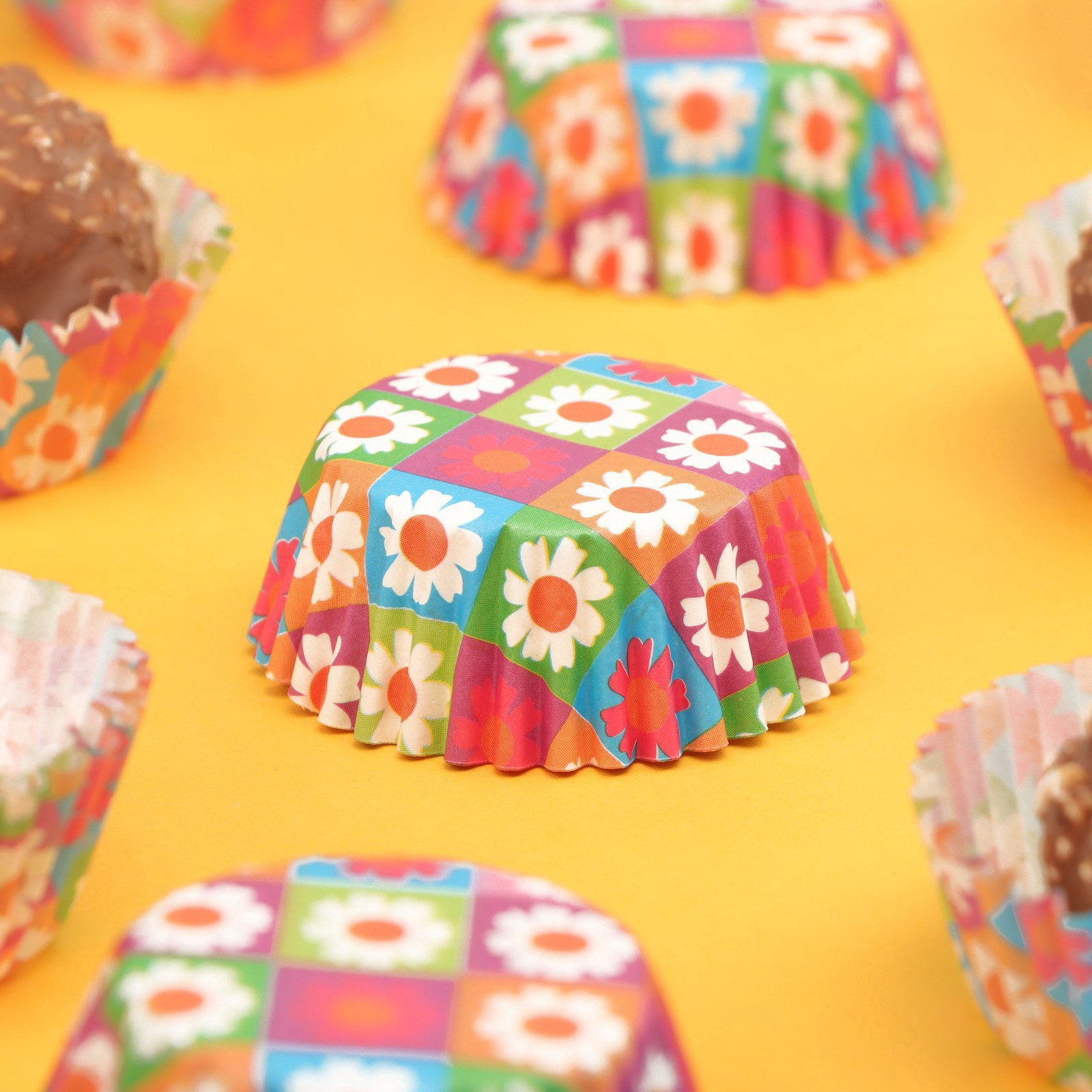 Формы для выпечки кексов бумажные "Ромашки", набор 300 шт., 3.5x2 см, одноразовые, разноцветные, 3.5 см., UPAK LAND, Китай