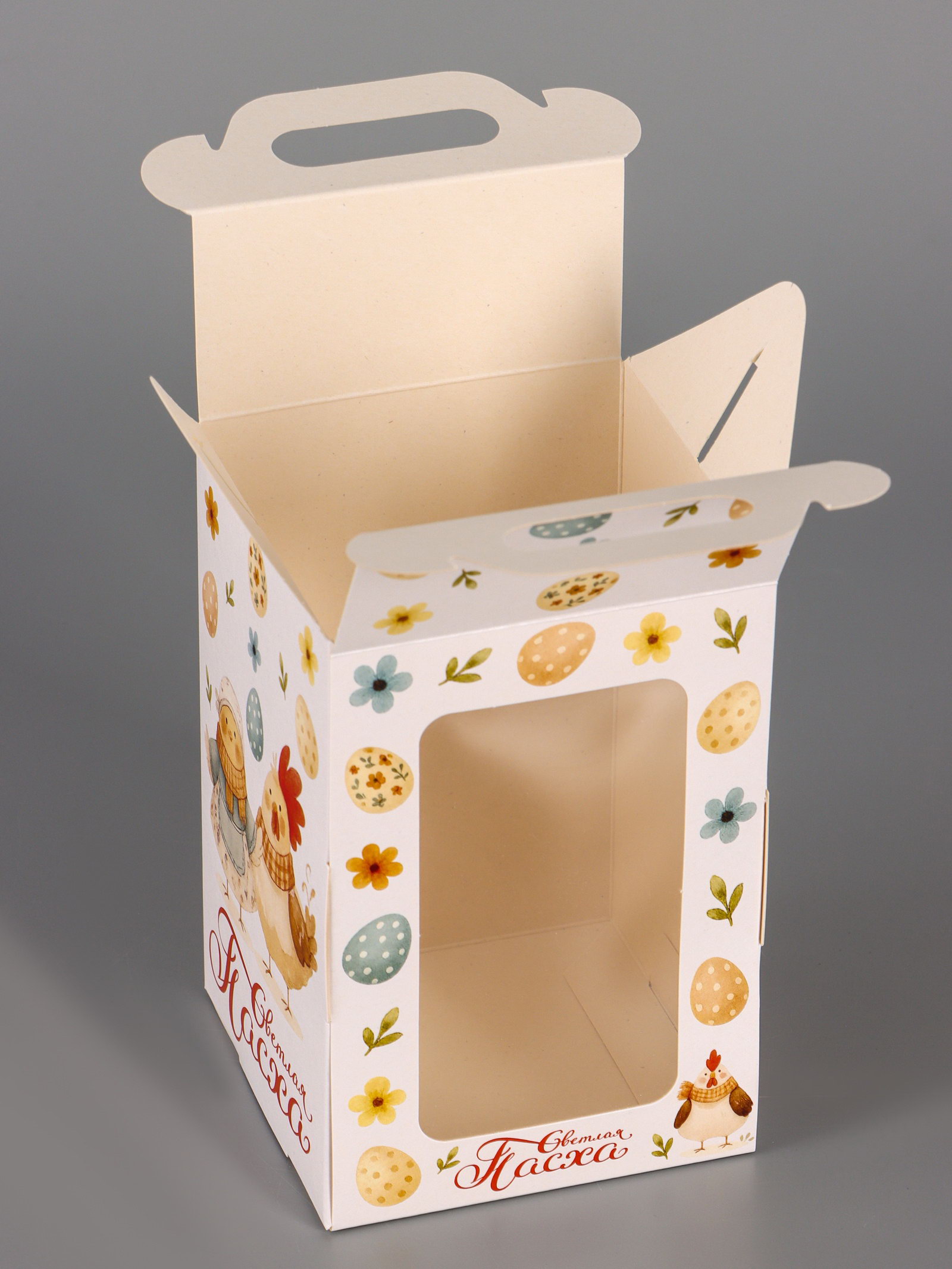 Коробка подарочная пасхальная, с окном и с ручкой "Курочки" 10x10x15 см, UPAK LAND, Россия