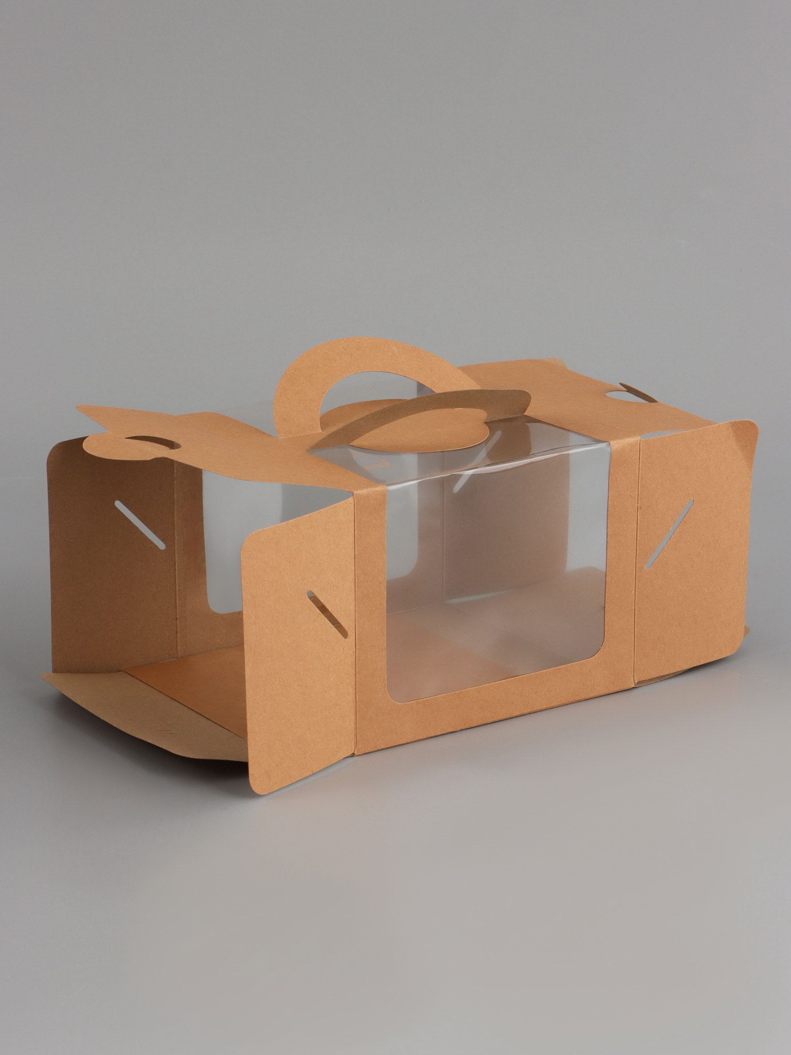 Коробка под бенто-торт с окном, крафт, 16x16x12.5 см, 16x16x12.5 см., UPAK LAND, Китай