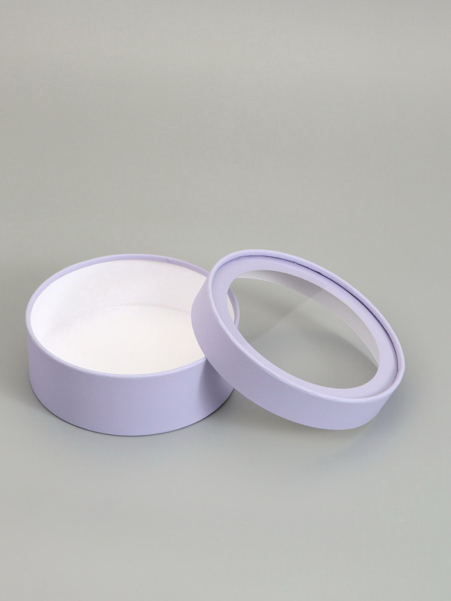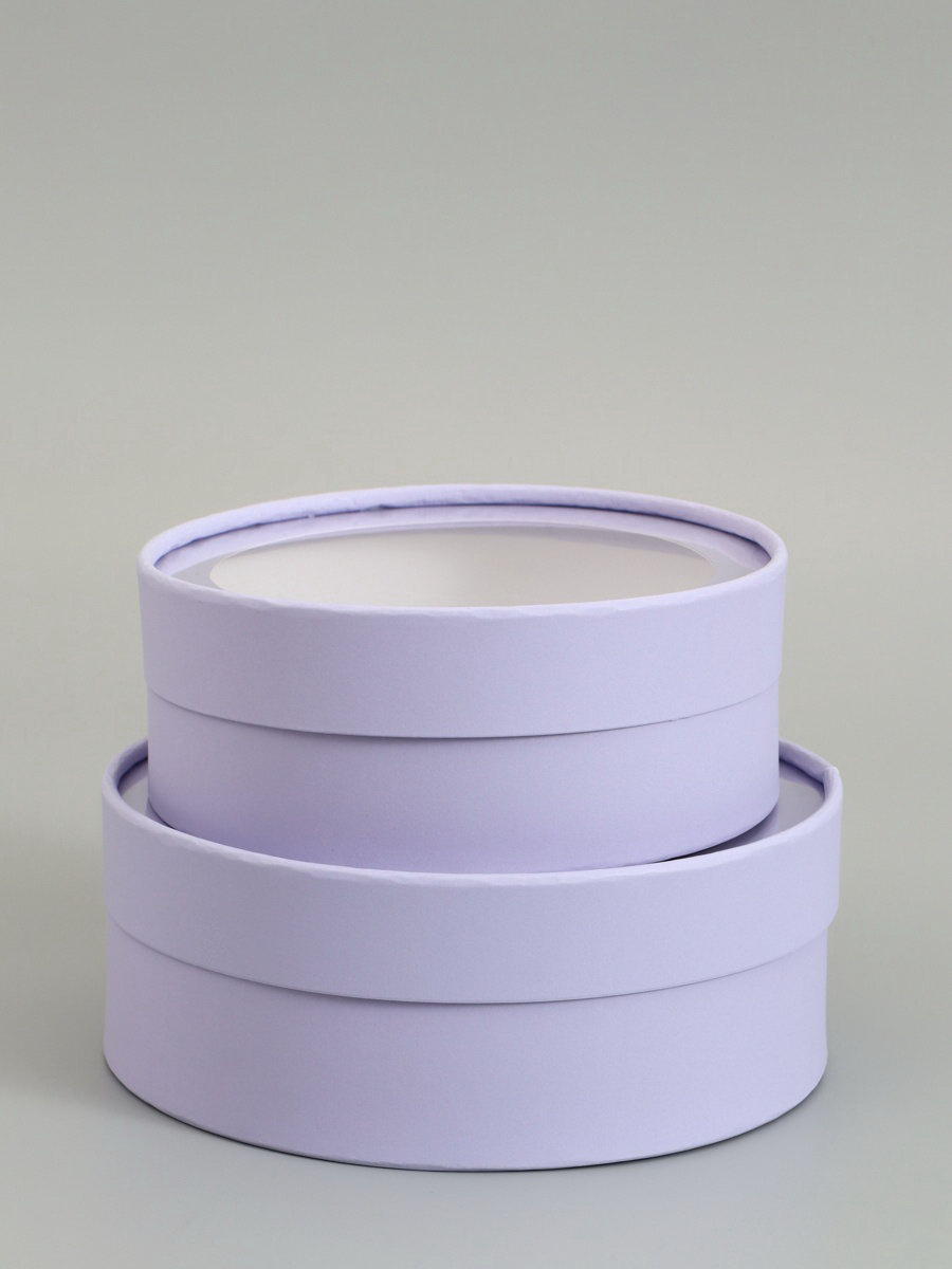 Коробки подарочные, 2 в 1 круглые, завальцованные, с окном, "Фиолетовая", 21 x 7 - 18х6 см, Россия