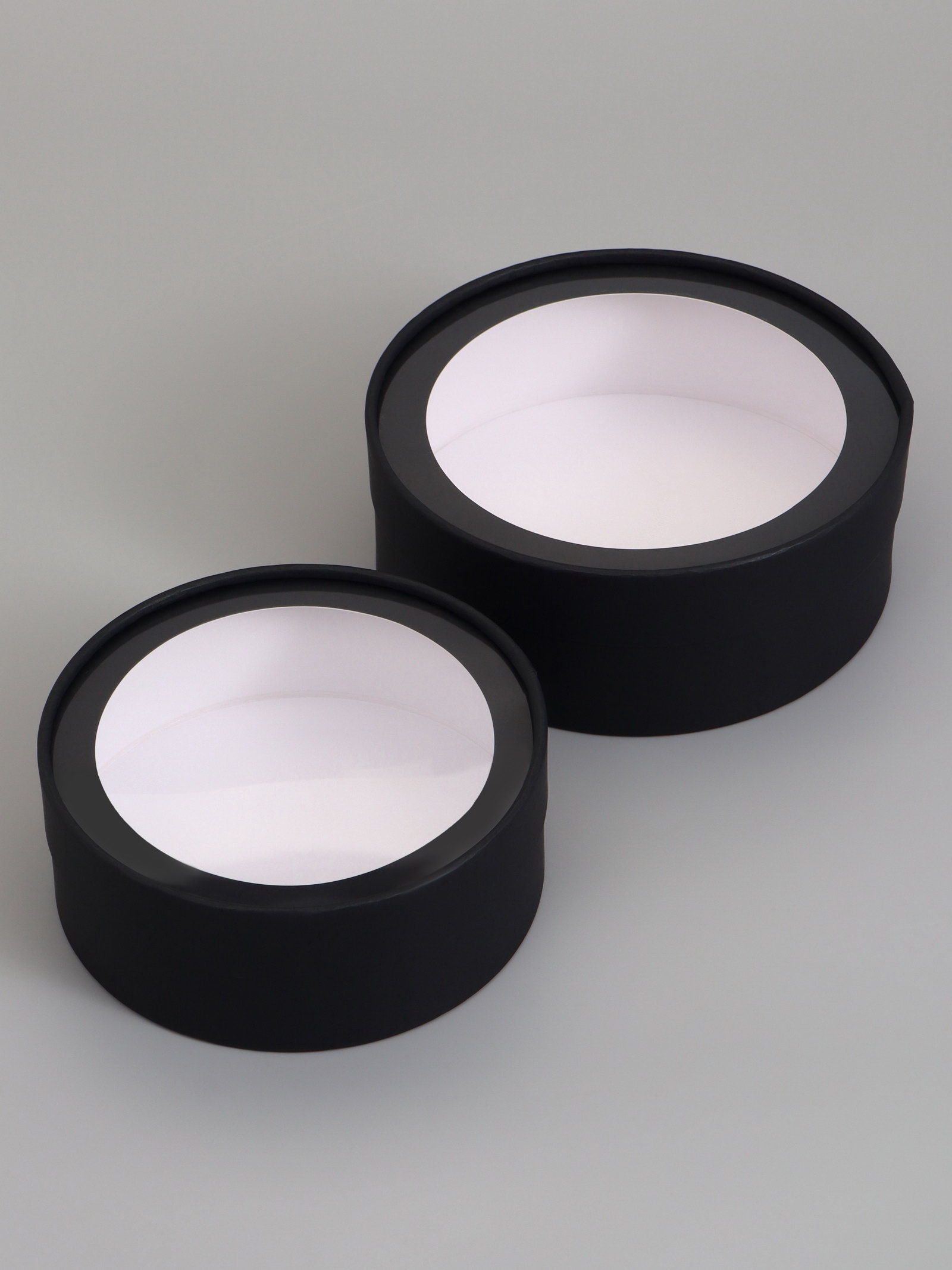 Подарочный набор коробок 2 в 1 круглых, "Черная" с окном, 21x7 - 18x6 см, UPAK LAND, Россия