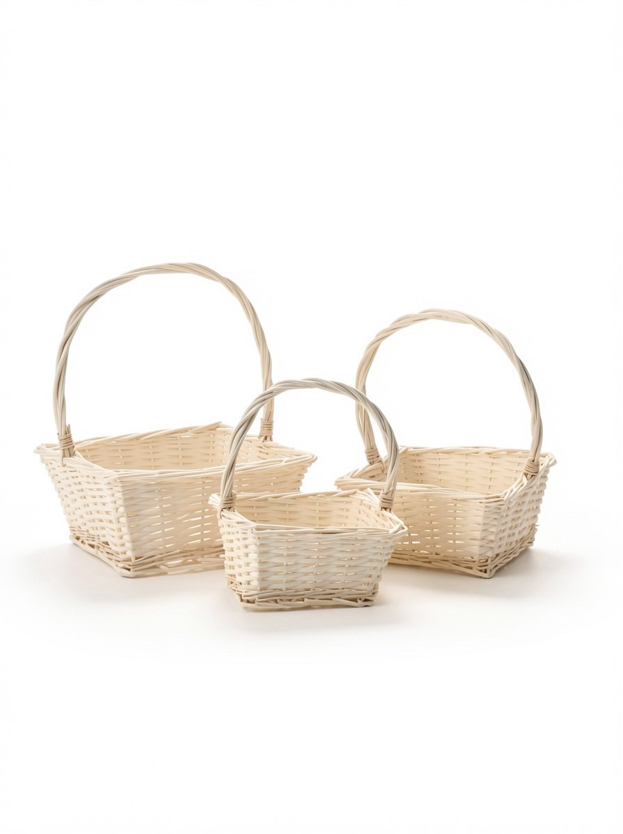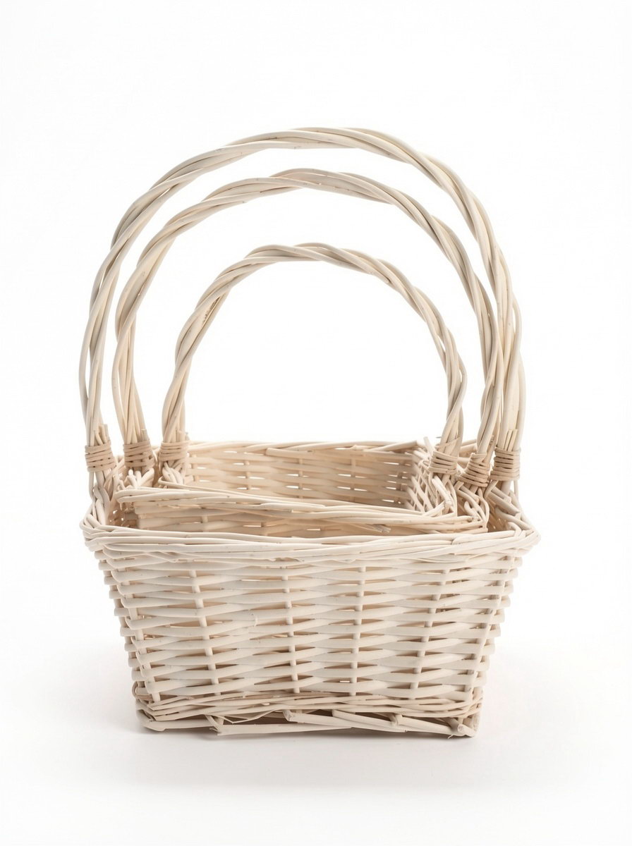 Длина, см: 20, 25, 30 Ширина, см: 20, 25, 30 Высота без ручки, см: 10, 12, 14 Высота с ручкой, см: 28, 33, 38 Размер упаковки: 31 x 37 x 31 см. tnved: 4601999000 Температурное ограничение: Нет Цвет: Белый Набор: Да Форма: Квадратная Крышка: Нет В наборе, шт.: 3 Дизайн: Однотонный | ||