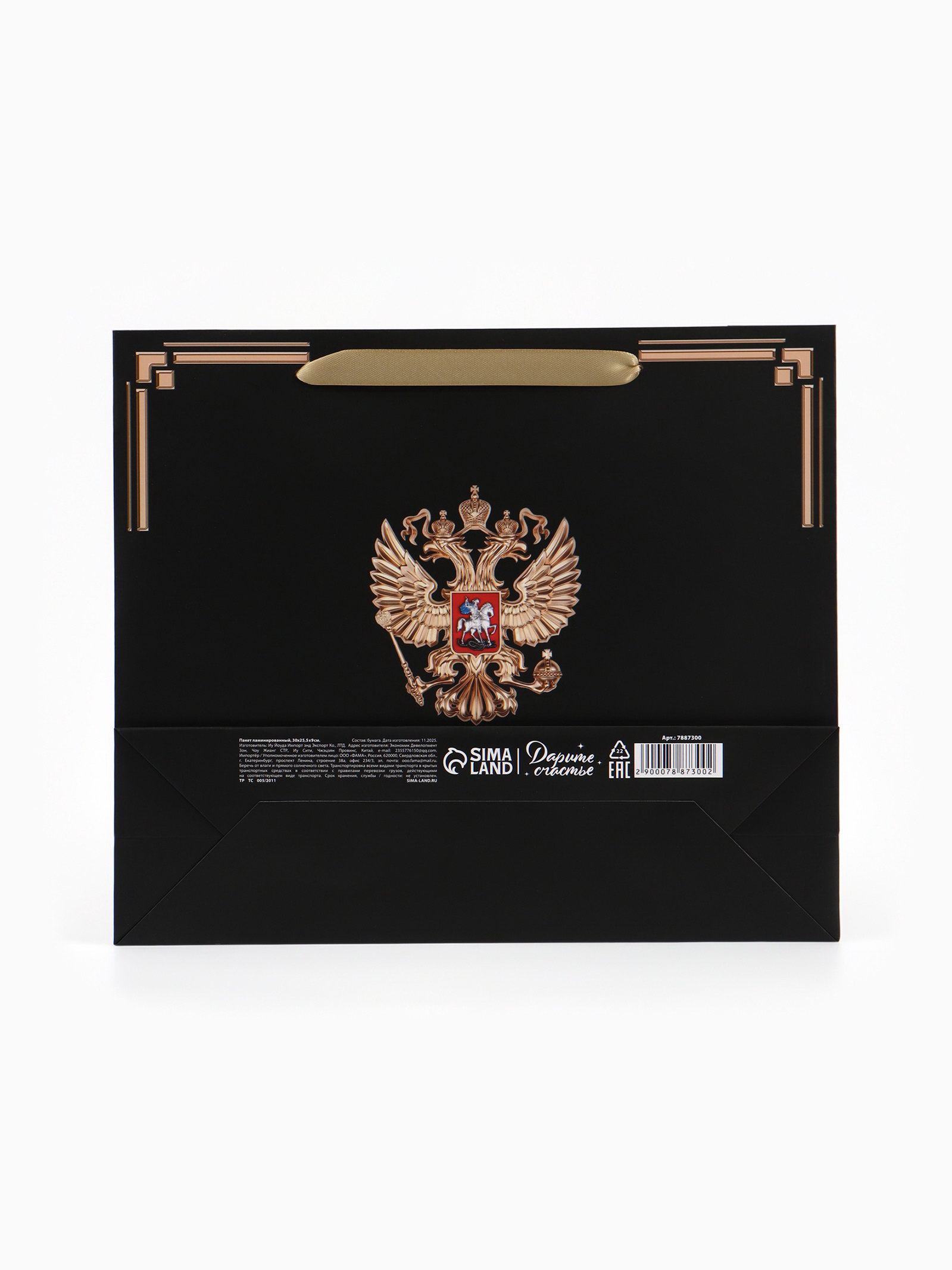 Тематика праздника: 23 Февраля, День России Цвет: Золотистый, Чёрный Размер упаковки: 25.5 x 30 x 0.3 см. Для кого: Унисекс Отделка пакета: Выборочный лак tnved: 4819400000 Дизайн: С рисунком, надписью Вид ручки: Ручка-шнур Примерный размер: L (~ 28см - 32см) Плотность, г/?2: 190 Тематика: Флаги, гербы | ||