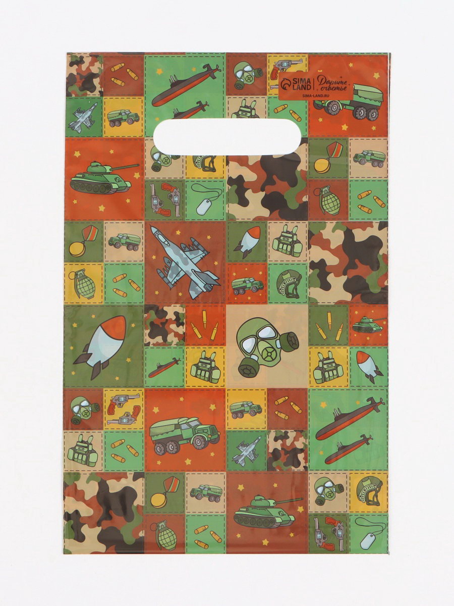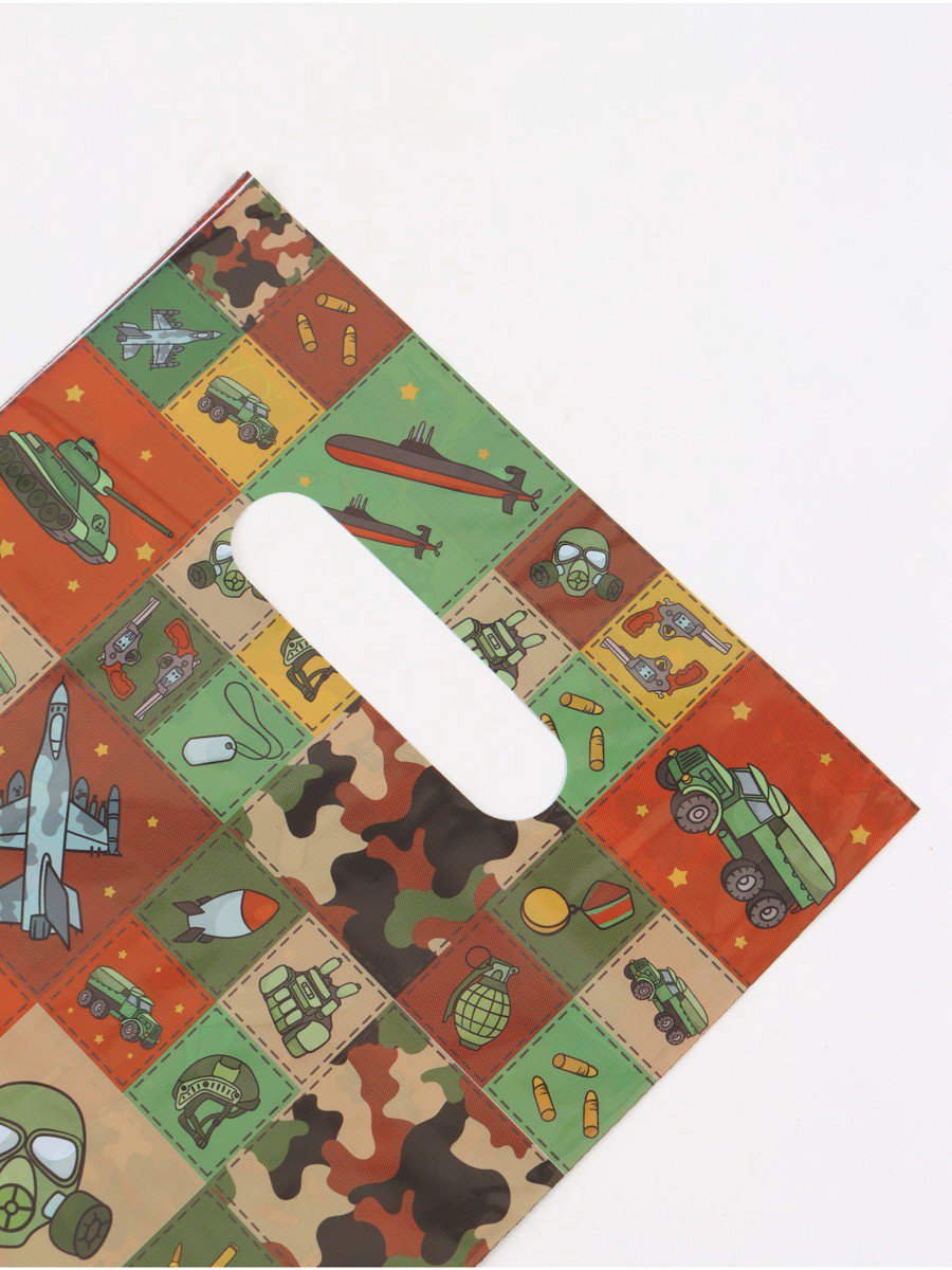 Пакет подарочный "Военный", полиэтиленовый с вырубной ручкой, 20x30 см, 30 мкм, UPAK LAND, Россия
