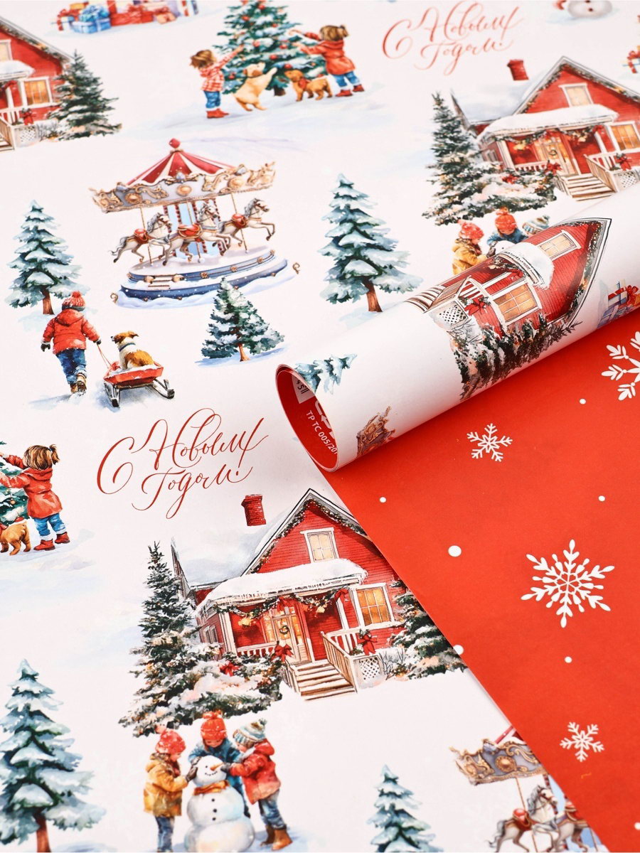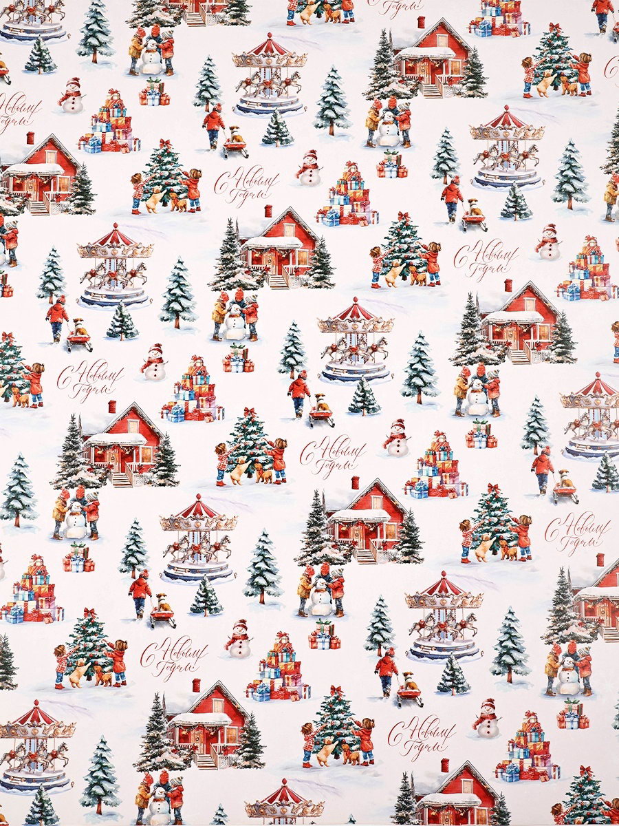 Бумага упаковочная глянцевая двухсторонняя "Новый год 2026", карусель из лошадей, 50x70 см, Дарите Счастье, Россия