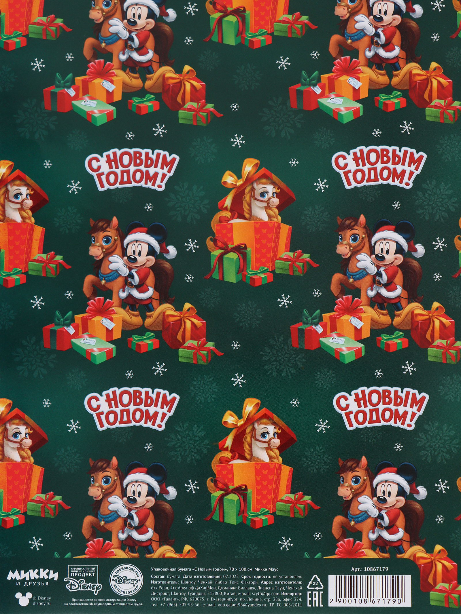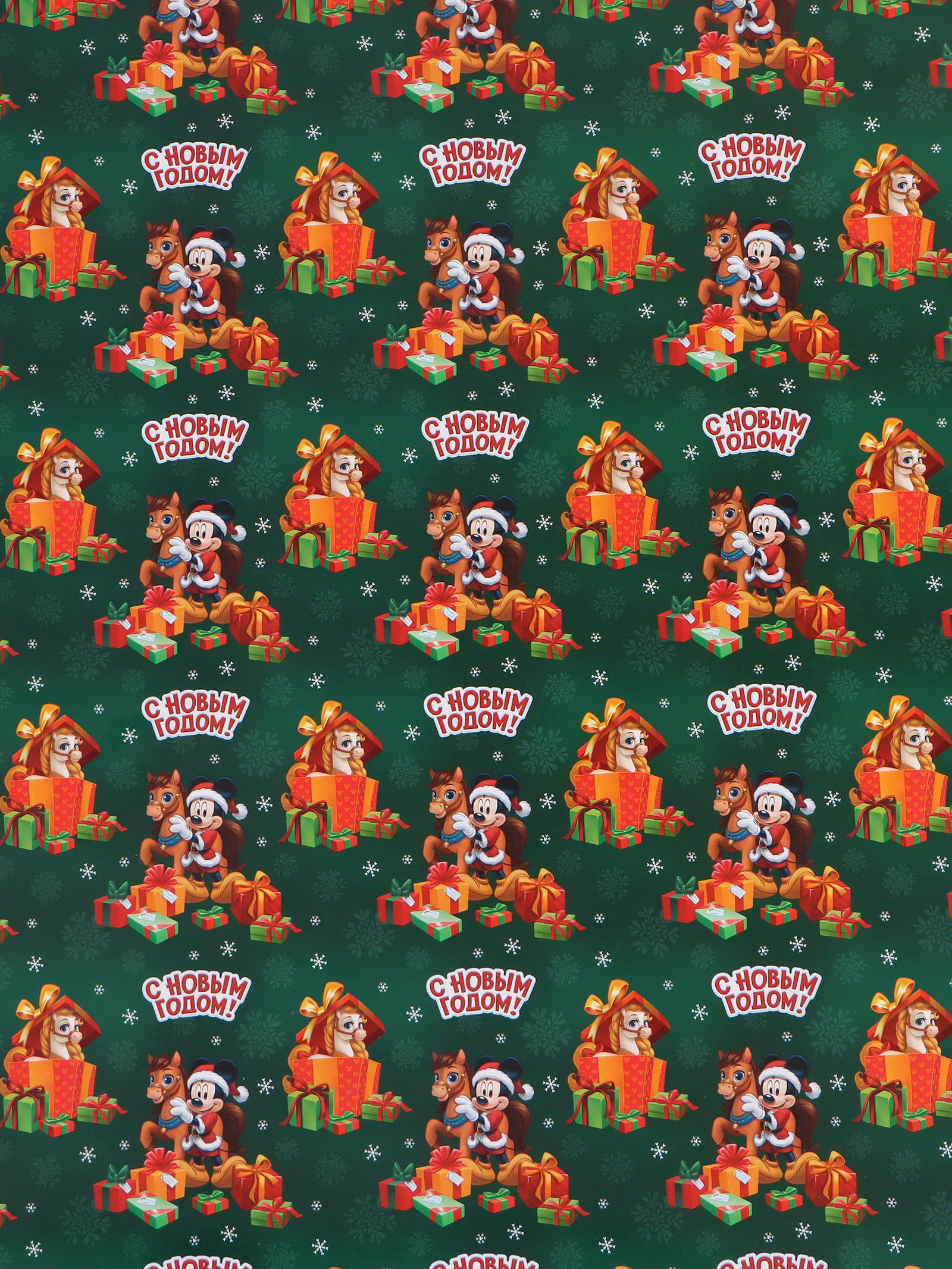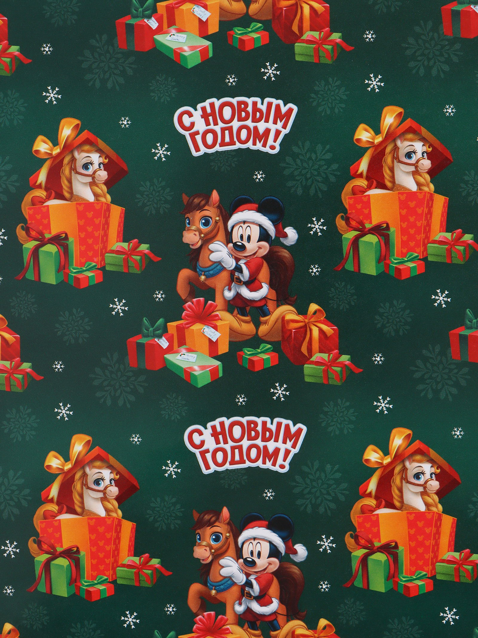 Бумага упаковочная глянцевая "Новый год", лошадь, 70x100 см, Disney, Россия