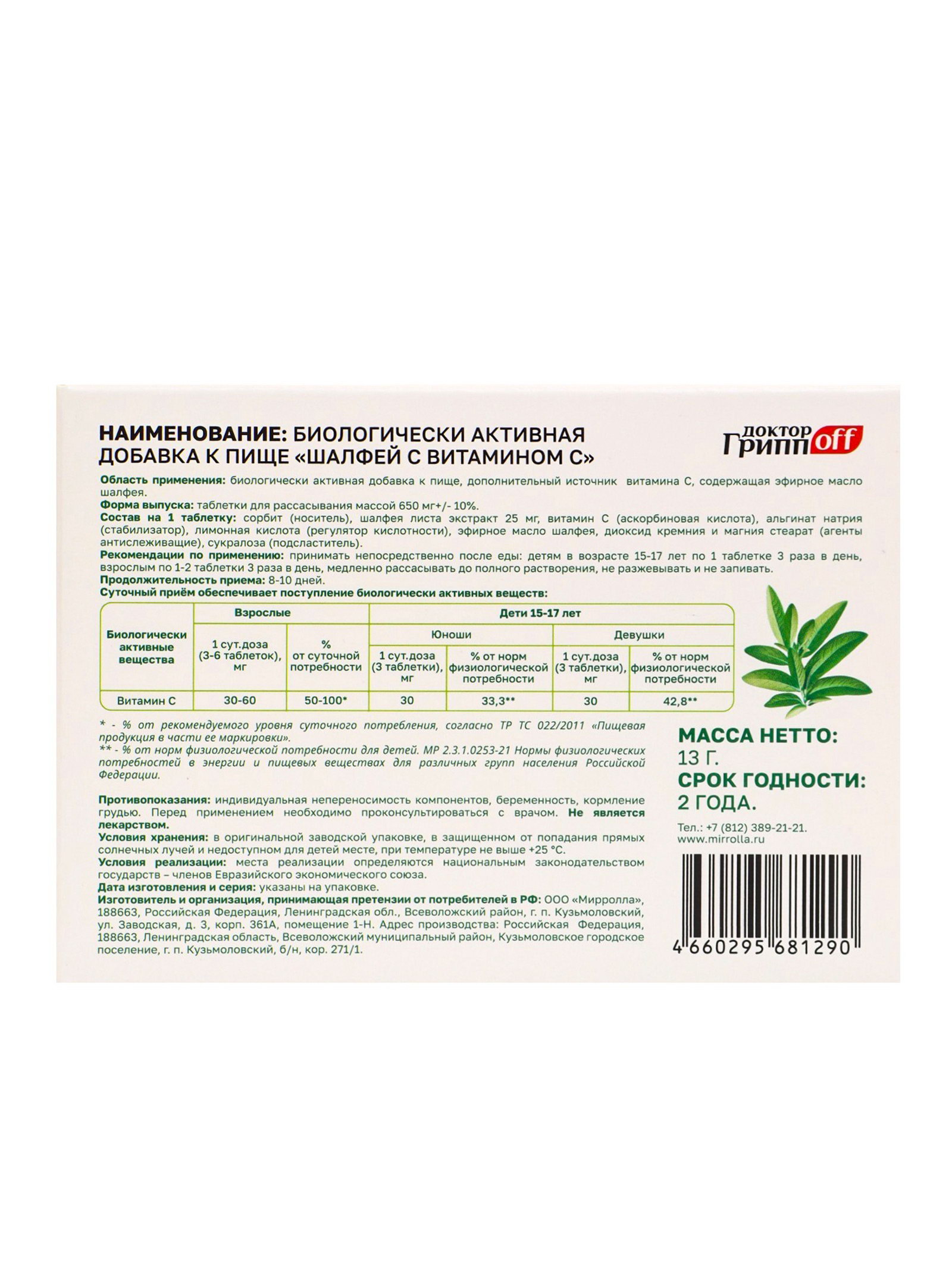 Шалфей с витамином С 20 таблеток, Доктор ГриппOFF, Россия